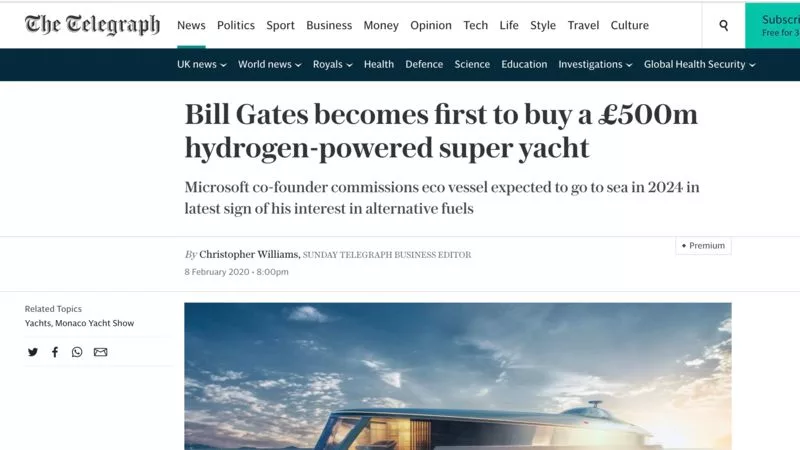 The false information spread like the Coronavirus epidemic. Bill Gates, the billionaire co-founder of Microsoft, is said to have bought a hydrogen-powered yachtfor a sum beyond comprehension, namely £500 million ($644 million). The Telegraphnewspaper broke the news on February 8th, before being picked up by the international press.
